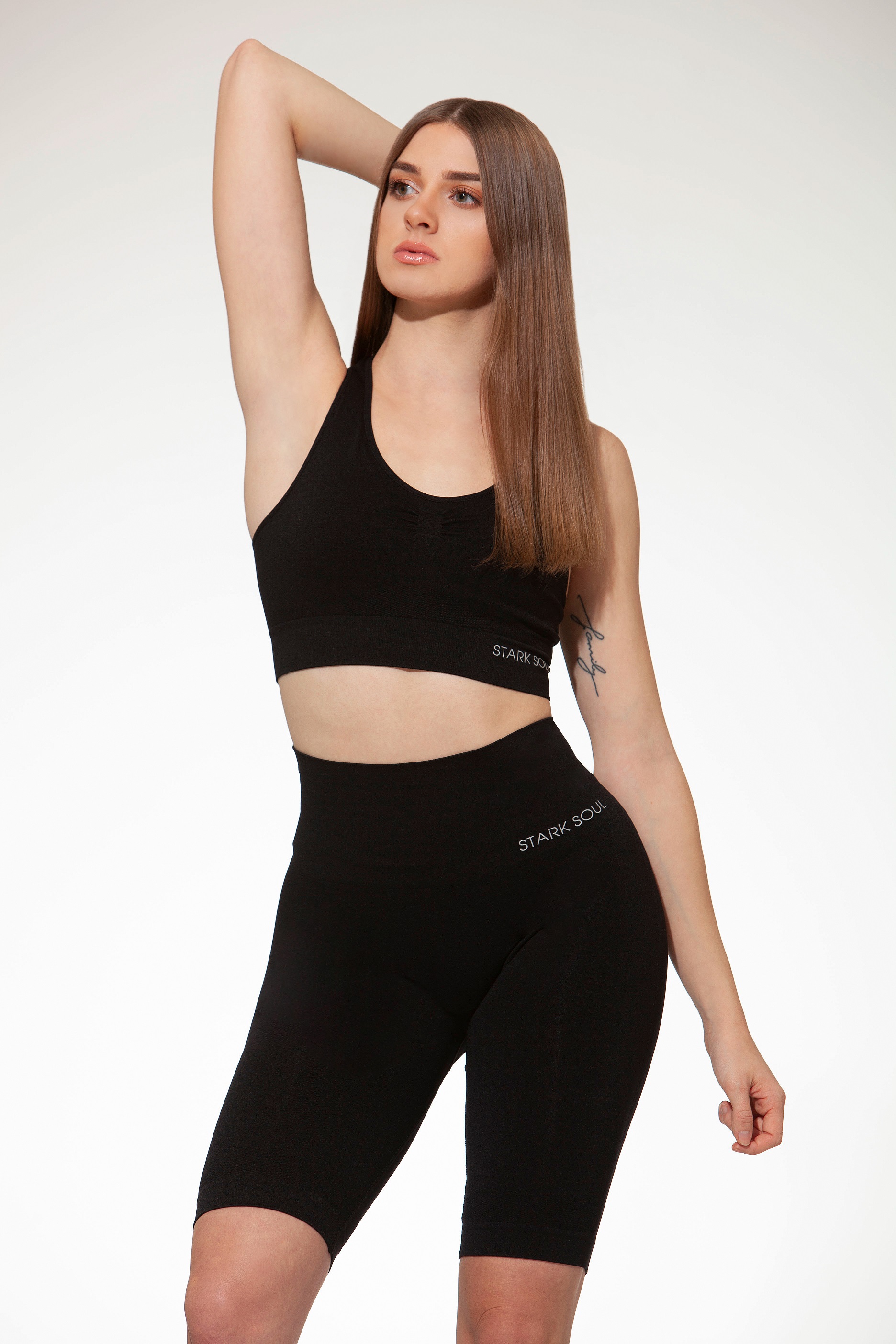 Die Ultra-Stretch-Passform betont ihre sportliche Figur.