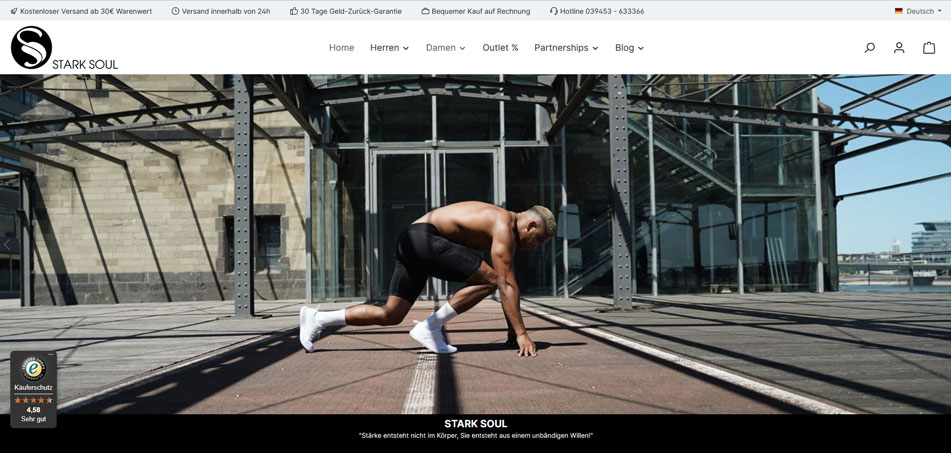 Stark Soul bietet seinen Kunden zahlreiche Vorteile beim Online-Einkauf. So bietet das Unternehmen generell einen kostenlosen Versand an, unabhängig vom Bestellwert. Zudem legt Stark Soul großen Wert auf einen schnellen Versand, in der Regel wird die bestellte Ware innerhalb von 24 Stunden an den Versanddienstleister übergeben. So kann sich der Kunde schnell über seine bestellten Produkte freuen. Eine 30-Tage-Geld-zurück-Garantie rundet den perfekten Kundenservice ab.