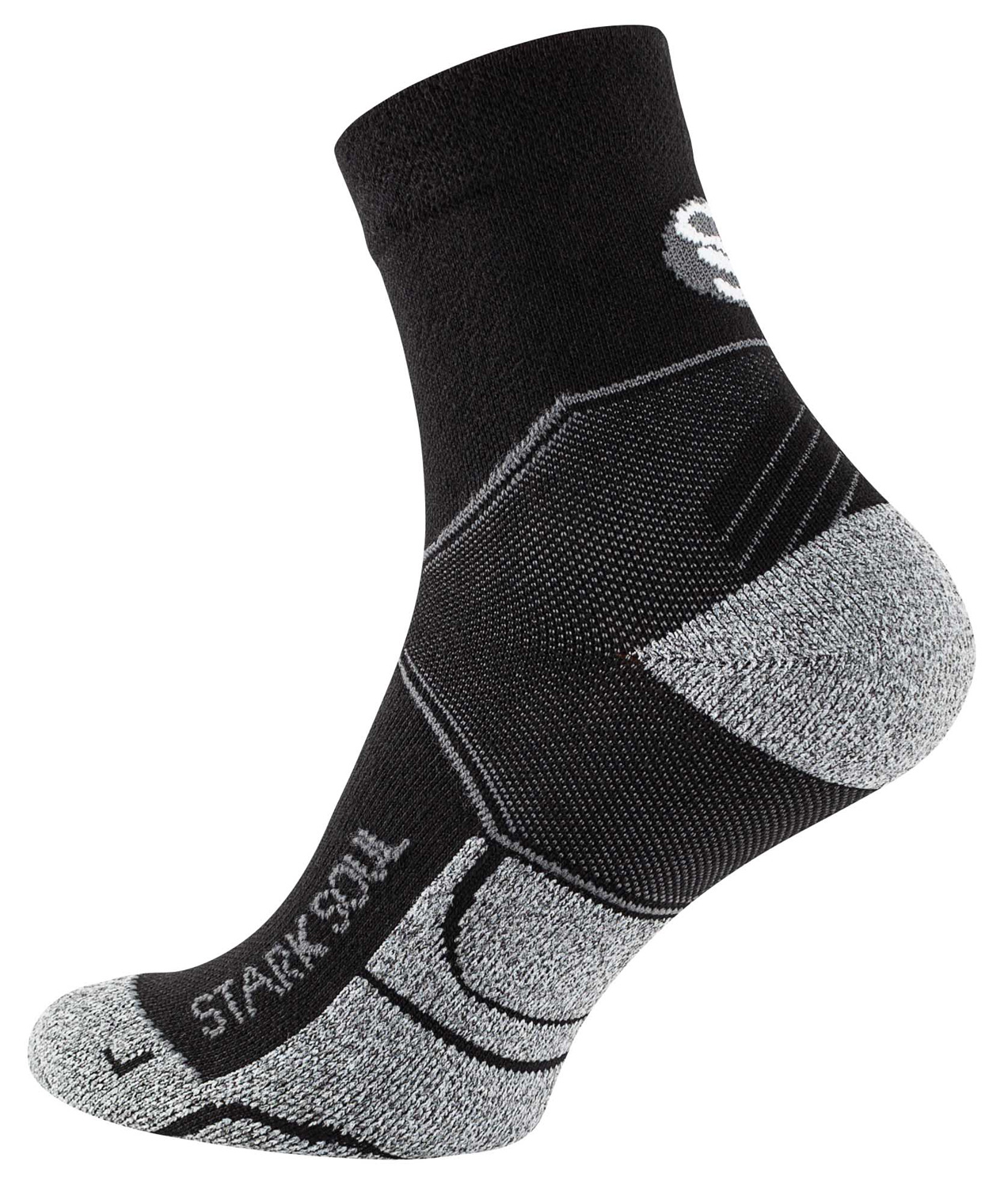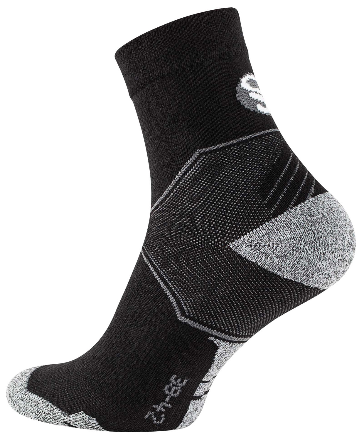 2 Paar STARK SOUL® Performance Sport-Sneaker Socks - Unisex Ob Du läufst oder fährst, mit diesen Socken bist Du immer auf dem richtigen Weg! Mit diesen Socken erhalten Sie einen perfekten Trainingspartner, ob zum Joggen, Radfahren, Klettern, Skateboarden oder anderen Sportarten. Die Sneakerausführung mit der speziellen Fersenlasche schützt die Achillessehne vor starker Reibung durch den Turnschuh. Durch gepolsterte, anliegende und ventilierende Zonen sind Sie optimal auf die Belastungen des Fußes zugeschnitten. Anatomisch geformtes Fußbett mit L/R beschriftet Fester gestrickte 3D-Supportzonen um den Mittelfuss bieten Schutz vor Verletzungen und Stabilität der Knöchel "Ultra Pro" - Fersenschutz Funktioneller und Atmungsaktiver Materialmix aus Baumwolle Flache Zehennaht Material: 51% Baumwolle | 44% Polyamid | 5% Elasthan Farben: Schwarz, WeissGrössen: 35-38 | 39-42 | 43-46Pflegehinweis: Maschinenwäsche 40°C