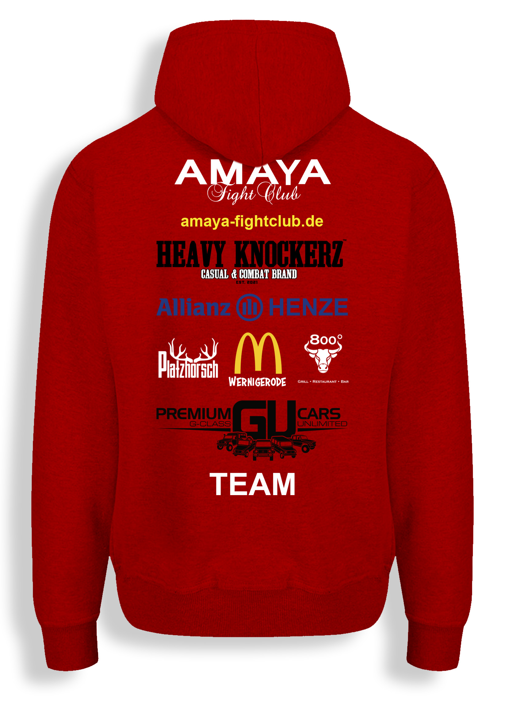 Der Stark Soul-Hoodie mit Amaya und Sponsoren -Logos auf der Brust un auf dem Rücken ist Dein perfekter Begleiter - und das nicht nur im Training. Sportlich und bequem zu jeder Jahreszeit präsentiert sich der Hoodie Premium French-Terry. Der langärmelige Kapuzenpullover in rot überzeugt mit einer hochwertigen Qualität und Verarbeitung. Das Brushed Fleece sorgt für kuschelige Wärme. Die Rippbündchen an Ärmeln und Saum mit Stark Soul-Patch sorgen für einen optimalen Tragekomfort und verleihen dem Hoodie ein sportliches Outfit. Die geraute Kängurutasche hält Deine Hände an kalten Tagen warm und bietet Platz für allerhand Kram.