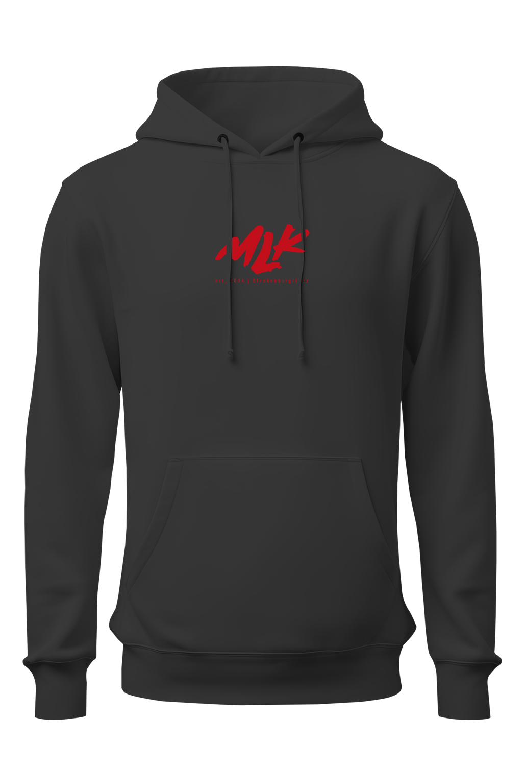 Vorderseite: Das ikonische MLK-Logo in kräftigem Rot auf der Brust verleiht dem Hoodie einen coolen und modernen Look – ein klares Statement für jeden MLK-Fan und ein Symbol der Zugehörigkeit zur MLK-Community.