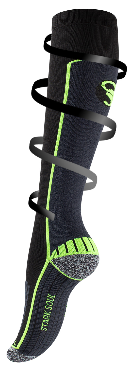 Die STARK SOUL Compression Socks basieren auf eingebaute abgestufte Kompression ( 12-14 mmHg), wodurch die Beine leicht gepresst werden.