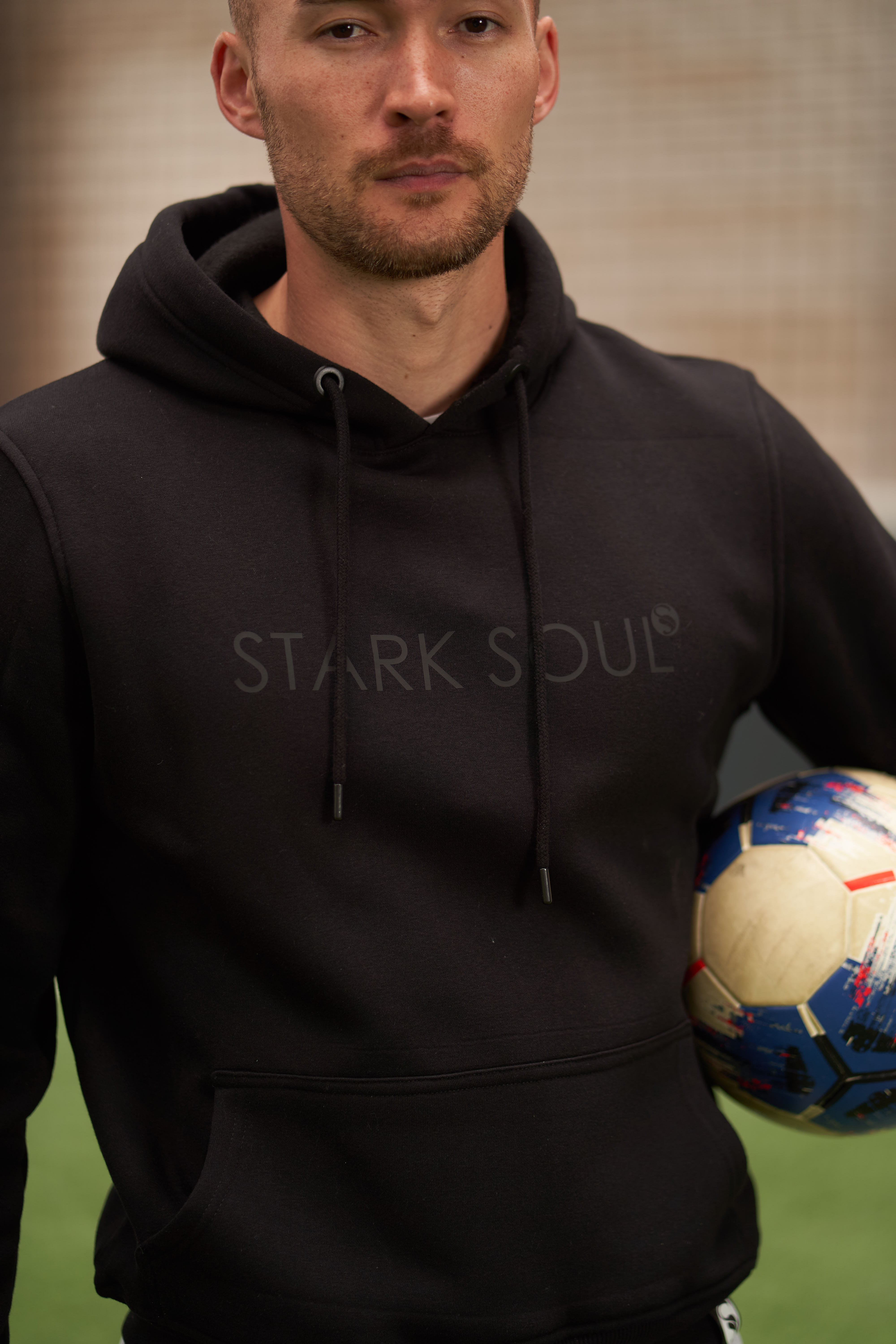 Minimalistisch und Sportlich - der Logo Hoodie von Stark SoulLangärmeliges Pulloverhoodie aus gerautem Fleecematerial. Ripp an Bündchen und Bundabschluss. Kängurutasche. Lässiges Hoodie mit Logo-Print Bequem geschnitten Praktische Bauchtasche Verstellbare Kapuze mit Tunnelzug Elastischer Bund Gerautes Fleece Material: 70% Cotton, 30% PolyesterGrössen: M, L und XLFarben: Schwarz | MarinePflegehinweis: Maschinenwäsche bei 30°C